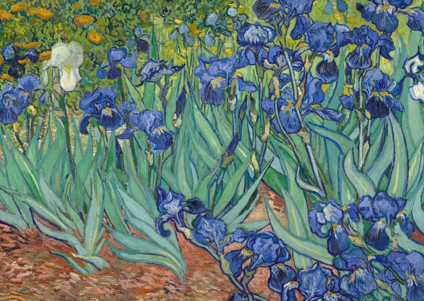 Een meesterwerk van Vincent van Gogh. Het prachtige blauw van irissen spat van het schilderij!
