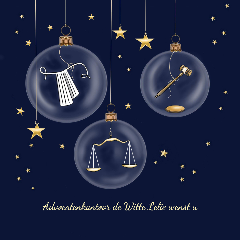 Stuur uw medewerkers of relaties deze sfeervolle glazen kerstballen met attributen uit de advocatuur en wens ze een goede kerst en gelukkig nieuw jaar