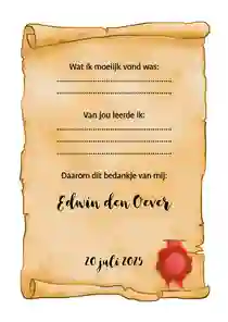 ✍️ Heb je dit jaar leren schrijven? Wat knap! Juf of meester vindt het vast leuk om een bedankkaart met jouw eigen handschrift te krijgen.