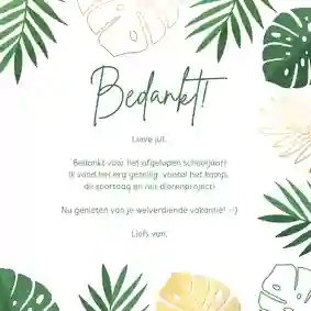 Leren doe je niet alleen op school. Er zijn ook een heleboel lieve coaches en trainers die hebben geholpen bij je sportieve ontwikkeling. Misschien heb je dit jaar wel leren dribbelen bij voetbal of kun je sinds kort een bal opslaan bij volleybal. Stoer hoor! Vergeet dus niet om ook je sportieve meester of juf te bedanken met een kaartje. Want of je nu op het veld of in het lokaal stond; een bedankje is op z'n plek.