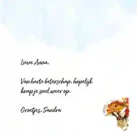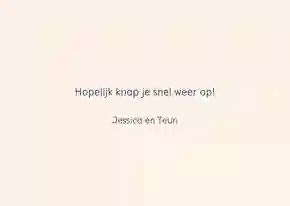 Een beterschapskaart met bloemen is een vrolijke manier om iemand beterschap te wensen door de brievenbus. Je zou verwachten dat een vers bos bloemen lastig door een brievenbusklepje gaat, maar daar hebben wij een oplossing voor gevonden. Zo passen alle bloemen die wij hebben gewoon door de brievenbus. Dat wordt een echte verrassing voor de ontvanger🌸