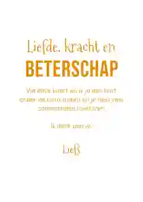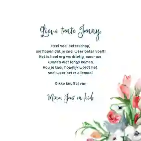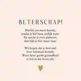 Tip: Wil je ook een toepasselijke tekst op de kaart zetten, maar vind je het lastig om de juiste woorden te vinden? Dat begrijpen wij. Daarom hebben we een aantal beterschapsteksten verzameld ter inspiratie.