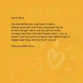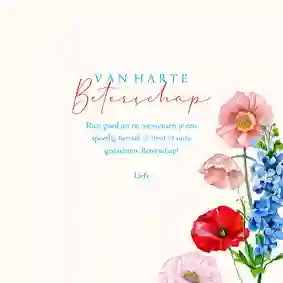 Tip: Wil je ook een toepasselijke tekst op de kaart zetten, maar vind je het lastig om de juiste woorden te vinden? Dat begrijpen wij. Daarom hebben we een aantal beterschapsteksten verzameld ter inspiratie.
