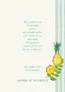 Een tuinfeest past bij bijna elke gelegenheid. Leuk voor bijvoorbeeld een housewarming of babyshower, maar ook zeer geschikt om een jubileum of verjaardag mee te vieren. Onze collectie is gevuld met tuinfeest uitnodigingen in verschillende thema’s, stijlen en kleuren. Op de uitnodigingen voor een tuinfeest zie je onder andere gezellige lichtsnoeren, bijpassende tuinstoelen en gekleurde bloemen terugkomen. De kaarten zijn dus al een (tuin)feestje op zich!
