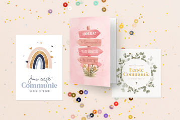 Je stuurt zo’n 3 tot 5 weken van tevoren een uitnodiging voor de communiedienst en het bijbehorende communiefeest naar je dierbaren. Zo weten zij precies waar en wanneer het communiefeest plaatsvindt.