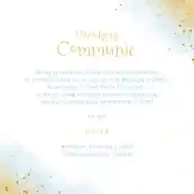 Een stijlvolle en hippe uitnodigingskaart voor een lente- of communiefeest met blauw en gouden waterverf en eigen foto's
