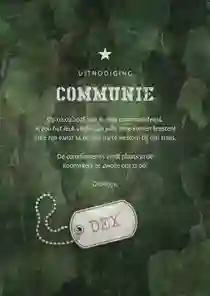 Menukaart communie army stoer met foto en legerplaatje
