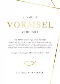Stijlvolle liggende uitnodiging voor een lentefeest voor een jongen of meisje. Met eigen foto en gouden geometrische lijnen. Met of zonder foliedruk.