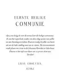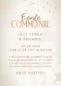 De eerste heilige communie van jullie meisje is een speciale gebeurtenis. En dat wil je natuurlijk vieren met familie, vriendjes en vriendinnetjes. Stuur daarom alvast een communie uitnodiging, zodat je deze bijzondere dag kunt delen met je dierbaarste mensen. Duik samen met jullie dochter in de collectie ‘Communiekaart meisje’ en ga op zoek naar de uitnodiging waar jullie hart sneller van gaat kloppen.