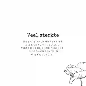 Een bloem staat voor stilte, licht, kalmte, liefde en natuur. Dat zijn mooie betekenissen om iemand steun te geven in de moeilijke periode. De bloemen condoleancekaarten zijn er in vele soorten, zoals een volle bos bloemen, een betekenisvolle bloem of juist een subtiele bloem. Kies bijvoorbeeld voor een condoleancekaart met paardenbloem (klap)roos of orchidee. Zo is er voor iedereen een geschikt kaartje waar diegene kracht uit kan halen.