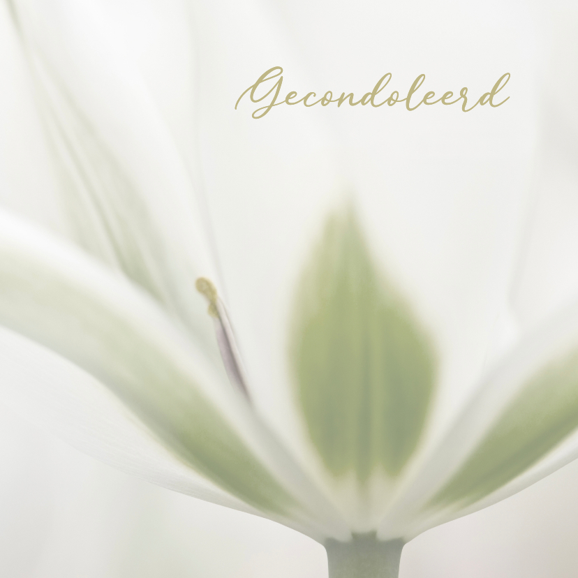 Condoleancekaart met zachte afbeelding van witte tulp met groen.