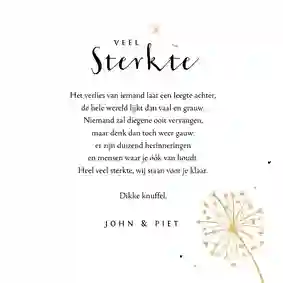 Tip: in de kaartmaker kun je de tekst op de voorkant van de kaart gemakkelijk veranderen van ‘sterkte met dit grote verlies’ in ‘sterkte met het verlies van jouw moeder’ of vice versa.
