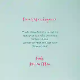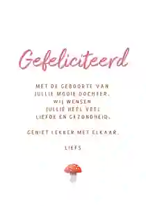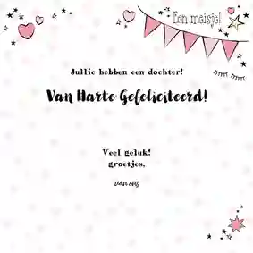 Een gefeliciteerd geboortekaartje voor een meisje sturen is al superattent. Maar wil je nog een extra dosis roze confetti in je kaart stoppen, dan zijn we je graag van dienst.