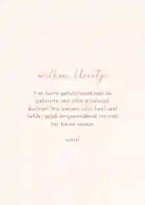 ✍🏻 Schrijf een lieve tekst op de kaart waarin je de jonge ouders alle geluk wenst. Op onze blog tippen we je graag onze 44 mooiste felicitatieteksten voor als er een kindje geboren is.