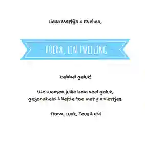 ![Hoera een tweeling [eigen namen]](https://images.kaartje2go.nl/k2go-html5thumbs-fra/283xautox85/hoera-een-tweeling-eigen-namen/hoera-een-tweeling-eigen-namen.jpg.webp,hash=f662373deb6658437a5f78896b14d9ba)