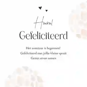 Misschien is je vriendin, zus of kennis nog niet bevallen, maar wil je ze alvast wel feliciteren met de zwangerschap van een tweeling. Stuur ze dan een leuke felicitatiekaart voor de zwangerschap.
