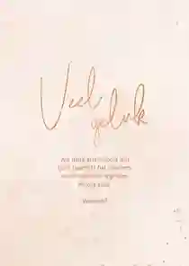 Een minimalistische kaart met ‘proost op het bruidspaar’ of toch een klassiek exemplaar met gouden letters? Een keuze maken uit onze honderden felicitatiekaarten kan best lastig zijn. Om een handje te helpen hebben we een handig filtermenu ontwikkeld. Dit maakt het vinden van de perfecte felicitatiekaart een stuk eenvoudiger. Zet bijvoorbeeld één of meer vinkjes bij een stijl of kleur en ontdek welke ontwerpen aan jouw voorkeuren voldoen.