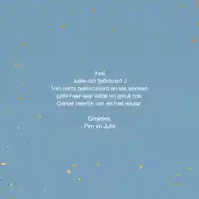 Heb je een mooie felicitatiekaart gevonden, maar zou een kleine aanpassing hem écht perfect maken? Neem dan contact op met ons klanttevredenheidsteam. Onze experts kijken graag met je mee en zetten eventuele wijzigingen aan het kaartje door naar onze designers.