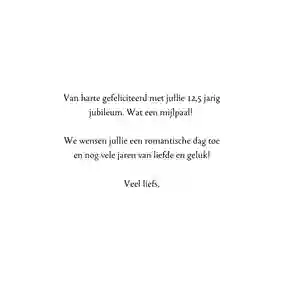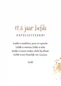 Zijn vrienden of bekenden van je 12,5 jaar getrouwd, maar ben je niet in staat om op het feest te komen? Stuur dan een 12,5 jaar getrouwd felicitatie met een leuke felicitatietekst, speciaal ontworpen voor het koperen huwelijksfeest.