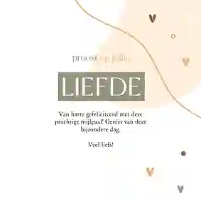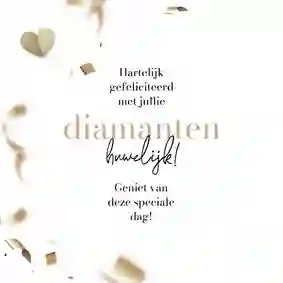 Als je een leuke felicitatiekaart hebt gekozen, kun je hem naar wens opmaken. Op deze manier kun je er een unieke ‘gefeliciteerd met jullie trouwdag’ kaart van maken. Daarvoor heb je geen ontwerpprogramma nodig, want je bewerkt de kaart heel makkelijk met onze kaartmaker. Hiermee voeg je de mooiste figuren, kaders en teksten toe. Wil je er een extra persoonlijke touch aan geven? Dan upload je een eigen foto en zet je hem op de kaart. Een foto van het bruidspaar op hun trouwdag doet het bijvoorbeeld altijd goed. Schrijf een mooie wens of een grappige felicitatietekst op de kaart en het is klaar om verzonden te worden.