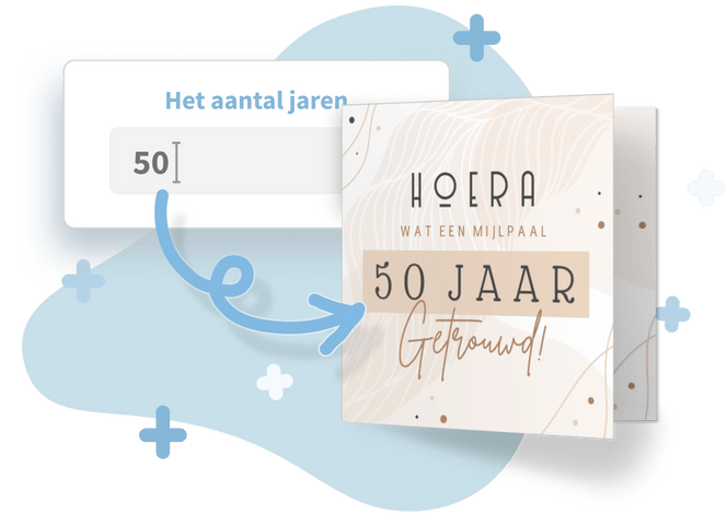 In één klik zien hoe het huwelijksjubileum jaartal op de felicitatiekaart komt te staan? Vul het jubileumjaar in en zie meteen op welke kaart hij er het meest uit springt.