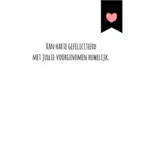 - Schrijf een leuke tekst in de kaart om het bruidspaar persoonlijk te feliciteren met hun verloving en trouwplannen.