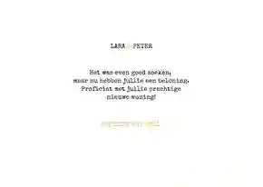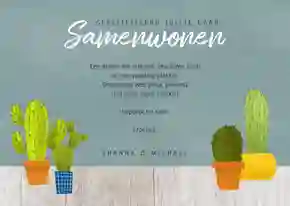Samenwonen is een grote stap, misschien trekt de één wel bij de ander in of heeft het stel samen een huis gekocht. Hoe de nieuwe woonsituatie er ook uitziet: in onze collectie vind je de mooiste kaarten voor koppels die onder één dak gaan leven. Kies bijvoorbeeld voor een grappig kaartje met twee sleutels in de vorm van een hartje of een kaart met planten voor stellen met groene vingers. Woont het stel al samen, maar verhuizen ze naar een nieuwe woning? Tussen onze felicitatiekaarten vind je ook liefdevolle ontwerpen met teksten als ‘happy new home’ en ‘nieuw stekkie’.