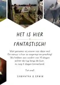 Fotocollage kaarten zijn leuk omdat je er heel veel foto’s op kwijt kunt. En ze zijn geschikt voor elke gelegenheid! Stuur je familie en vrienden bijvoorbeeld een kaartje met foto’s van een mooie vakantie. Of bedank mensen voor een mooie dag met een leuke collagekaart.