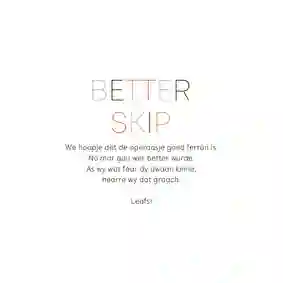 Wil je iemand beterschap wensen? Stuur je Friese vriend, collega of familielid dan een originele betterskip kaart. Want met een leave, Fryske tekst komt je betterskip kaart extra persoonlijk over. En dat is altijd fijn voor degene die je een hart onder de riem wil steken. Kies een Fryske kaart uit de collectie of maak je betterskip kaart helemaal zelf.