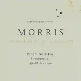 De naam van jullie kindje is misschien wel het belangrijkste onderdeel van het geboortekaartje. Iedereen is natuurlijk super benieuwd naar hoe de kleine heet. Wil je weten op welke kaartjes jullie babynaam het mooiste uitkomt? Gebruik dan onze geboortekaartjes met naam generator. Het enige wat je hoeft te doen is de voornaam van jullie kindje invullen. Alle geboortekaartjes worden dan automatisch voorzien van deze naam. Zo kun je meteen zien op welk kaartje jullie babynaam het meeste straalt!