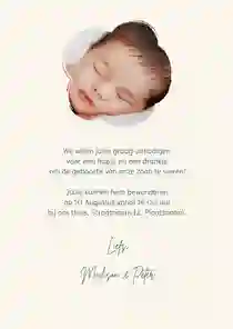 Of je nu een losse uitnodiging stuurt of een inlegvel bij je geboortekaartje gebruikt: een persoonlijke tekst maakt het af. Hier wat voorbeelden:
