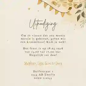 - Vermeld op het geboortekaartje: ‘De uitnodiging voor het kraamfeest volgt nog.’