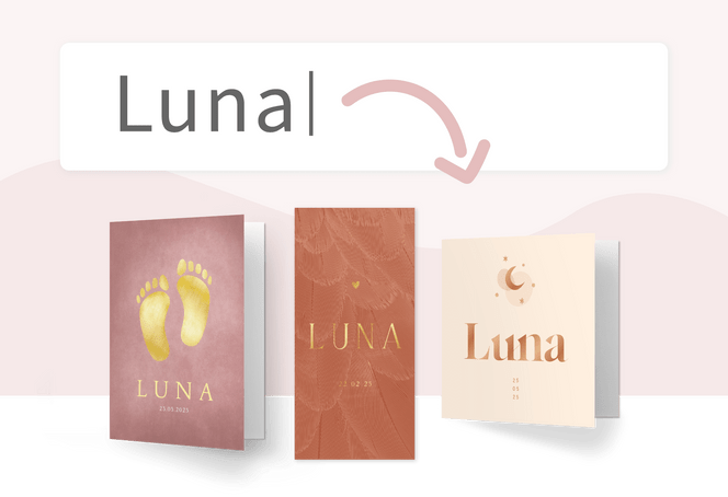 Ontdek hoe jullie meisjesnaam eruit ziet op geboortekaartjes