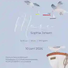 Gebruik onze generator en zie meteen de babynaam verschijnen op alle geboortekaartjes.