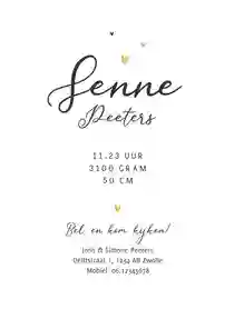 Gebruik onze generator en zie meteen de babynaam verschijnen op alle geboortekaartjes.