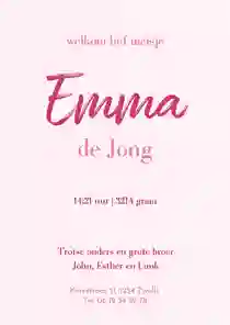 - Schrijf een tekst op het geboortekaartje - Kies voor een van onze voorbeeldteksten of verzin zelf iets moois. Speel met lettergroottes en verlies jezelf in de vele lettertypes. Extra schrijfruimte nodig? Bestel dan een inlegvel bij je kaart.