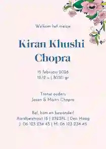 - Ontzettend tevreden met de geboortekaartjes! Vraag of het kaartje naar wens kon worden aangepast en dit hebben ze dan ook binnen een week super mooi gedaan! BedanktW17 november 2025