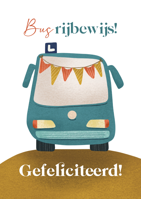 Geslaagd kaart voor rijbewijs bus met illustratie van een tourbus.