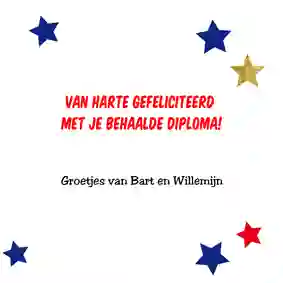Vaak horen leerlingen al via via wat de uitslag is, maar is het behalen van het diploma nu officieel gemaakt? Dan kan de kaart op de post, eventueel met een klein presentje. Neus tussen onze geslaagd cadeaus en voeg een cadeaubon, lekkere reep chocola of een ballon met ‘hoera’ aan de bestelling toe. De bezorger doet de kaart samen met het cadeau bij de geadresseerde in de bus. Liever de felicitatiekaart persoonlijk overhandigen? Laat de kaart thuisbezorgen en stop een handje confetti of een schoolfoto in de envelop.