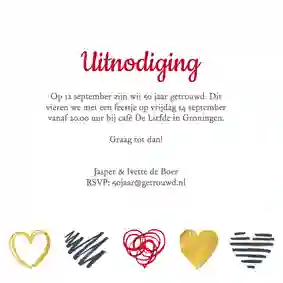 ❤️ Tip: zijn jullie 50 jaar samen, maar nooit getrouwd? Liefde kent geen grenzen en onze jubileumkaarten ook niet. Met een kleine aanpassing zijn de kaarten uitermate geschikt voor een 50 jaar samen viering.