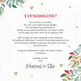 Een 50-jarig huwelijk is een bijzondere mijlpaal en verdient een groot feest. Daarom hebben onze designers (oftewel liefdesexperts) voor jullie de mooiste 50 jaar getrouwd uitnodigingen ontworpen. Zo kunnen jullie vijftig jaar onvoorwaardelijke liefde vieren met jullie dierbaren op een schitterend 50e huwelijksjubileum.