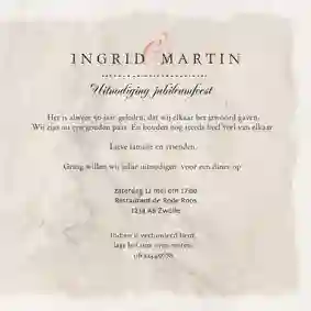 Een 50-jarig huwelijk is een bijzondere mijlpaal en verdient een groot feest. Daarom hebben onze designers (oftewel liefdesexperts) voor jullie de mooiste 50 jaar getrouwd uitnodigingen ontworpen. Zo kunnen jullie vijftig jaar onvoorwaardelijke liefde vieren met jullie dierbaren op een schitterend 50e huwelijksjubileum.