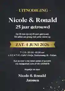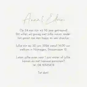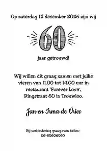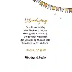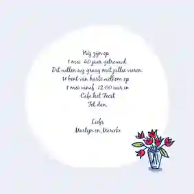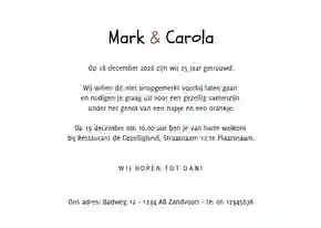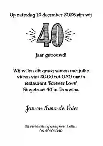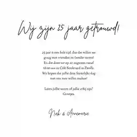 Hebben jij en je partner binnenkort een mijlpaal te vieren, en willen jullie graag een jubileumkaart met humor versturen? Nodig al je dierbaren uit met een grappig kaartje voor jullie 25-, 40- of 50-jarig trouwjubileum. Vraag een gratis proefdruk aan of bestel direct. Dat wordt lachen!