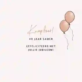 Er zijn een hoop humoristische jubileumkaarten te bestellen. Bestel het kaartje van de twee feestende ouderen naast de molen of het ontwerp waarin jullie samen in de bakfiets zitten. Je kan het zo gek niet bedenken of je vindt het in de grootste kaartencollectie van Nederland. Zoek je naar meer inspiratie? Bekijk dan de kaartjes voor een 25-jarig jubileum, 40-jarig jubileum of 50-jarig jubileum.