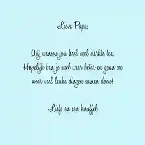 Zie je een kaart die je leuk vindt, maar zou je de kaart graag met een kleine aanpassing willen bestellen? Neem dan gerust contact op via info@kaartje2go.nl, dan kijken we wat er mogelijk is.