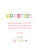 Welkom! Leuk dat je een kijkje komt nemen op mijn kaartenpagina. Mijn naam is Rose en sinds 2019 ben ik werkzaam bij Kaartje2go om voor jullie met veel plezier de leukste en mooiste kaartjes te mogen ontwerpen. Als designer bij Kaartje2go ontwerp ik kaarten voor alle categorieën op de website; van geboortekaartjes, trouwkaarten tot beterschapskaarten. Mijn kaarten kun je herkennen door minimalistische ontwerpen met typografie en lijnillustraties. Zie je een kaart die je leuk vindt, maar zou je de kaart graag met een kleine aanpassing willen bestellen? Neem dan gerust contact op via info@kaartje2go.nl, dan kijken we wat er mogelijk is.