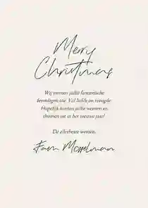 Omdat minimalistische kerstkaarten een eenvoudig design hebben, gaat de aandacht automatisch meer uit naar je boodschap. Je kunt bijvoorbeeld kiezen voor een korte kerstwens in een sierlijk lettertype, of plaats ‘2026’ groot op de voorkant.