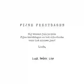 Fotocollage kaarten bestaan uit 3 of meer foto’s in combinatie met stijlvolle lettertypes of kaders. De kaarten hebben een moderne uitstraling en zijn geweldig voor de echte fotoliefhebber. Maak dit jaar dus samen sfeervolle foto’s in een kerstige setting en verwerk ze in je kerstkaarten. Ontwerp jouw kaart door leuke en grappige kaders, figuren en teksten toe te voegen. Zo kun je de fotocollage op je kerstkaarten helemaal naar eigen wensen inrichten en het zo persoonlijk maken als je zelf wil. Wat zullen jouw vrienden en familieleden hier blij van worden!
