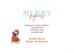 Samen lange strandwandelingen maken. Lekker knuffelen op de bank op een regenachtige dag. Je hond en jij zijn elkaars beste vrienden. En heb je kinderen, dan telt de hond ook helemaal mee als gezinslid! Daarom is het superleuk om een kerstkaart met honden te versturen rond de feestdagen. Kies bijvoorbeeld een kaart met een foto van je trouwe viervoeter. Of ga voor een van onze superschattige kerstkaarten met illustraties van honden. De keuze is reuze!