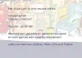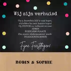 Zitten de kerstboom en kerstballen dit jaar in een verhuisdoos, maar wil je toch nog een klein beetje het kerstgevoel ervaren? Of ben je vlak voor kerst verhuisd en wil je jouw nieuwe adres met vrienden en familie delen? Combineer dan de adreswijziging met een kerstgroet en stuur een kerstkaart met verhuisbericht. Kies een kerstkaart met verhuisdozen, een kerstboom op de verhuiswagen of een kerstkaart met de tekst ‘New year, new home!’.